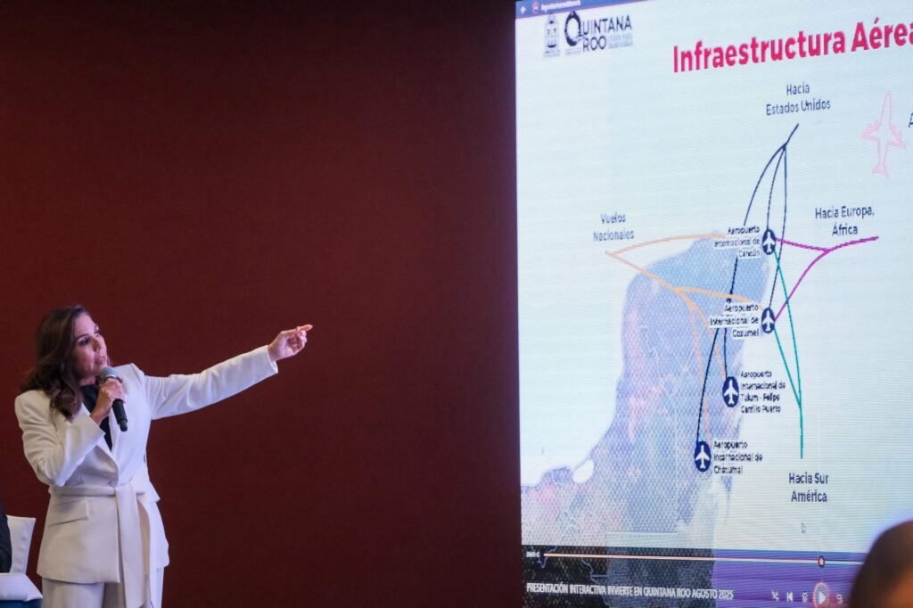 “Quintana Roo no es un destino más. Es una plataforma comprobada de crecimiento, un territorio fértil para la inversión y una puerta privilegiada hacia Estados Unidos, Canadá, Europa, el Caribe, América Latina y el resto del mundo”, afirmó la titular del Ejecutivo.