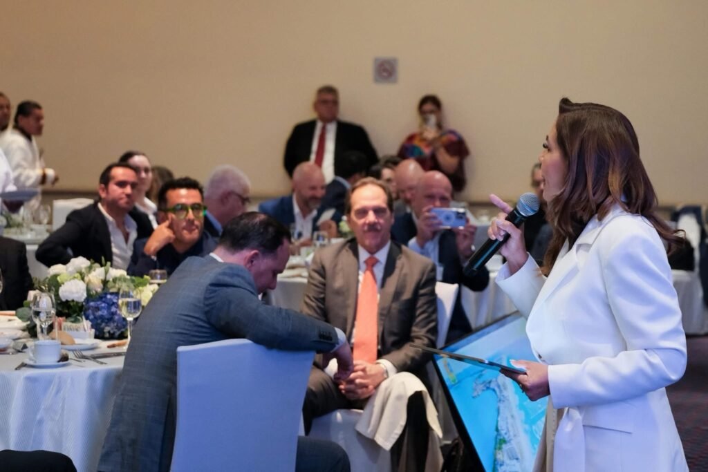 Mara Lezama expuso el éxito turístico, el avance hacia una diversificación económica inteligente y sostenible, los incentivos fiscales claros, la proyección de empleo formales, la certeza jurídica, seguridad y estabilidad institucional, pero sobre todo, el talento humano que es la base que asegura la sostenibilidad y competitividad de cada proyecto que se consolida en el estado.