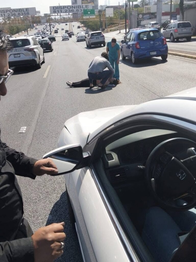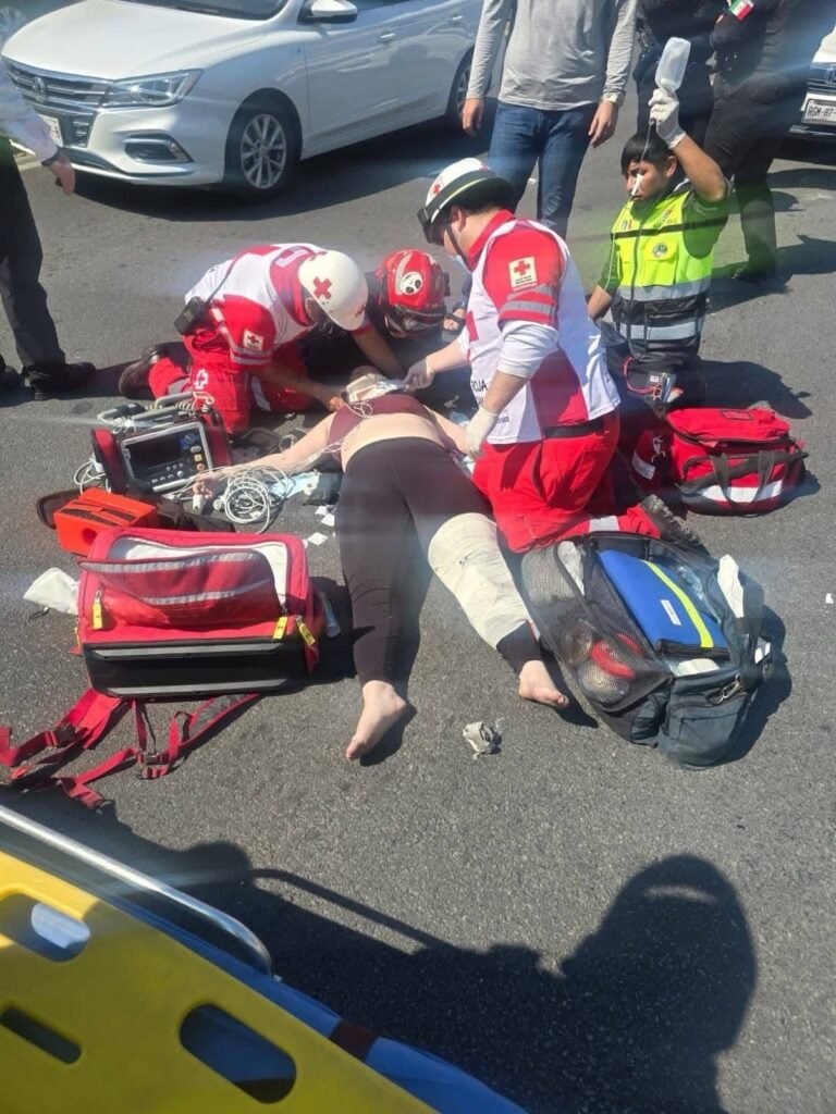 Monterrey, Nuevo León.— Una joven identificada como Hortensia, de 24 años de edad, fue reportada en estado grave tras ser atropellada la tarde de este martes en la avenida Paseo de los Leones, a la altura de la calle Américo Vespucio, en el sector Cumbres.