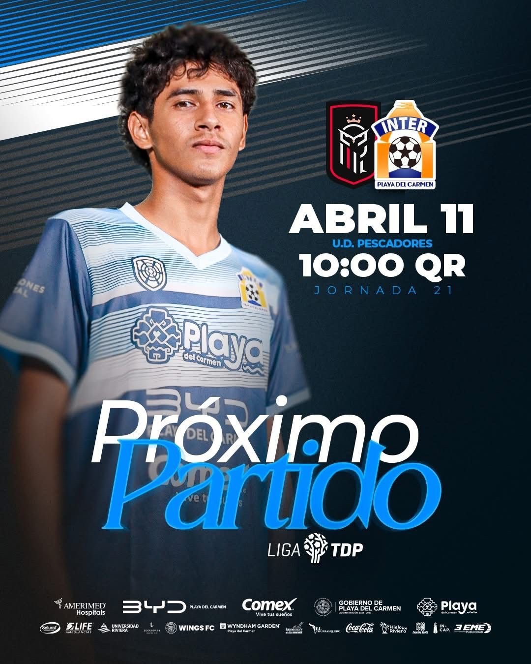 Playa del Carmen, Quintana Roo a 10 de Abril de 2026.– El Inter Playa del Carmen, que ya se encuentra virtualmente clasificado a la Liguilla de Filiales, buscará asegurar su pase de manera matemática este sábado 11 de abril, cuando visite al Deportivo CTM Búhos de Puerto Morelos, en duelo correspondiente a la jornada 21 y penúltima de la Temporada 2025-2026 de la Liga Tercera División Profesional (TDP), Grupo 1.