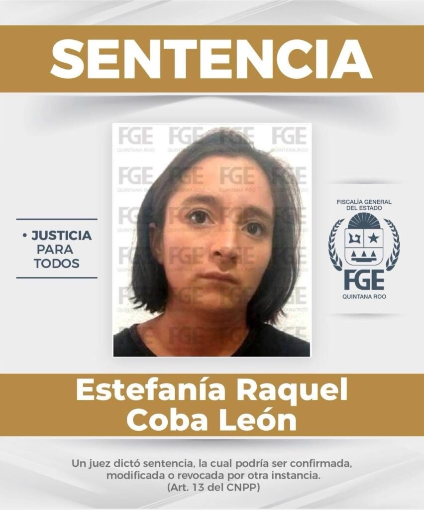 En un segundo caso, los sentenciados son Juan Carlos Mena Interian y Estefanía Raquel Cobá León, quienes recibieron una pena de 38 años de prisión por el delito de homicidio calificado en agravio de una víctima femenina, también de identidad reservada.